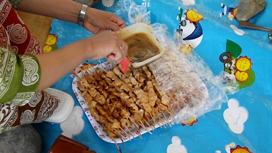 Bumbu Kachang (英語でpenuts sourceと紹介いただきました) これを、先ほどのsoy sourceに 重ね塗りをします。 (Bumbu=調味料、Kacang=ピーナッツ) |